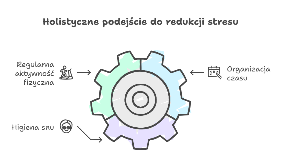 Kolejnym istotnym aspektem jest organizacja czasu. Często stres związany jest z brakiem czasu na odpoczynek i relaks. Warto zadbać o równowagę między pracą a życiem osobistym, wprowadzając regularne przerwy i czas na regenerację. Planowanie dnia i wyznaczanie priorytetów może pomóc w zminimalizowaniu poczucia przytłoczenia i umożliwić lepsze zarządzanie stresem.