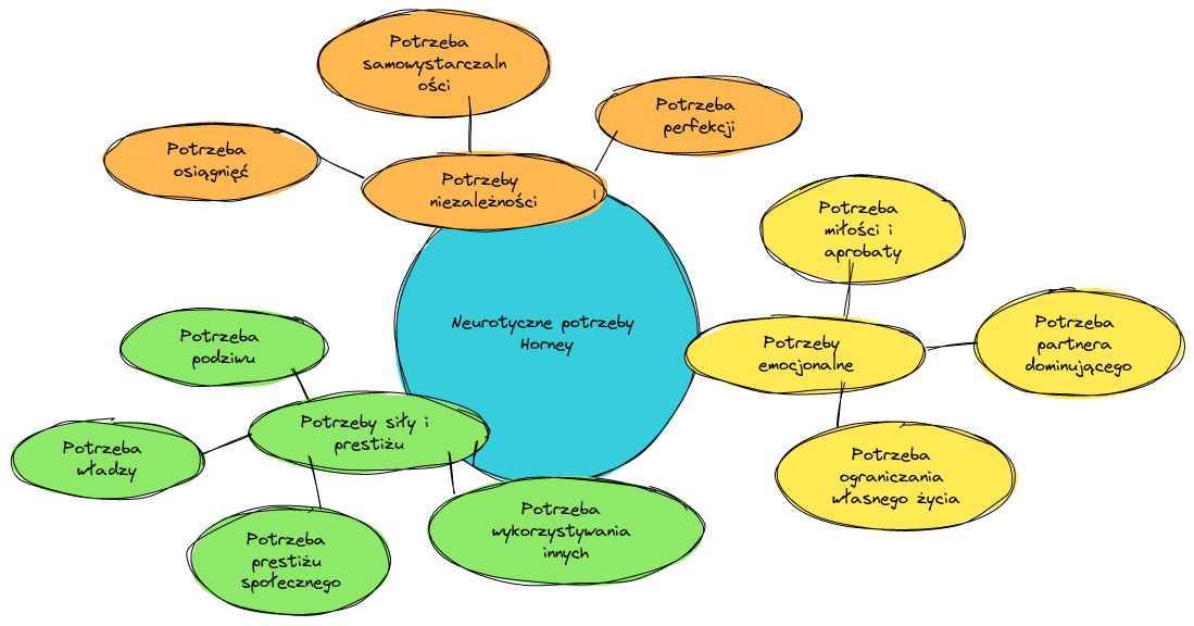 ⚠️ Ważne: Te potrzeby nazwała „neurotycznymi”, ponieważ dominują one nad funkcjonowaniem osoby, a ich zaspokojenie jest praktycznie niemożliwe [6].