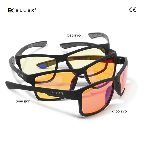 - ️ IDEALNE DLA GAMERÓW: 100% filtr modeli X100 i X100 EVO zapewnia optymalną ochronę oczu podczas długich sesji grania. Modele X EVO mają cieńsze zauszniki i silikonowe wkładki w zausznikach, aby zwiększyć komfort.