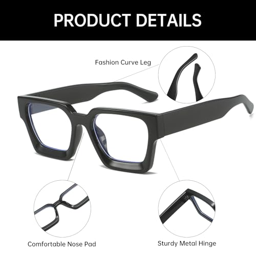 - Kwadratowy design retro: Nasze okulary z niebieskim światłem o klasycznym wyglądzie mogą łatwo dostosować się do wszystkich typów twarzy, a także są wygodne, lekkie i wytrzymałe. Ten sam styl mody co gwiazda sprawi, że będziesz na szczycie trendu mody. Wszystkie nasze okulary to płaskie okulary (0,0 x), używane głównie do zapobiegania niebieskiemu światłu